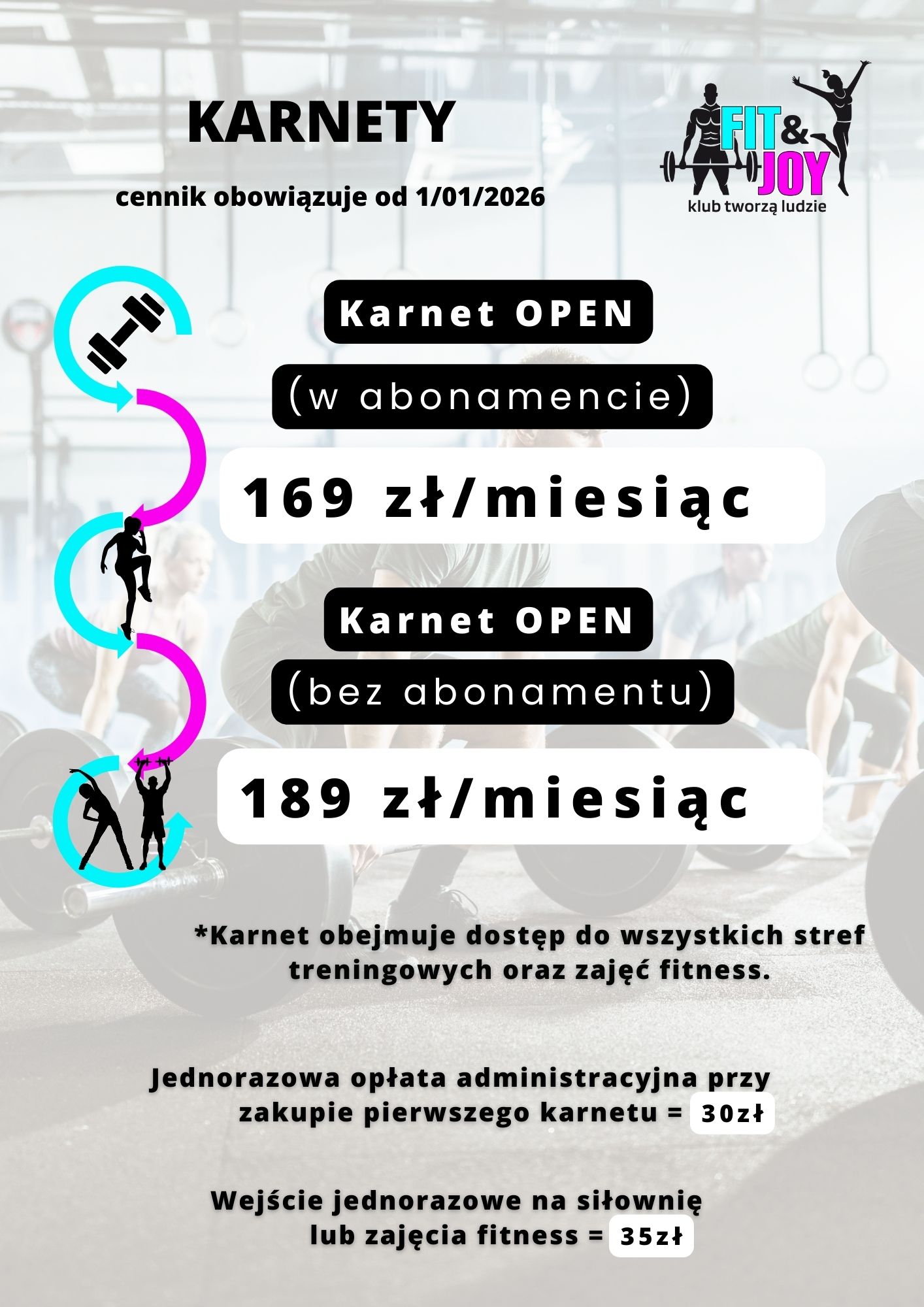 WAŻNE: Przy zakupie pierwszego karnetu doliczana jest JEDNORAZOWA opłata administracyjna 30 zł.